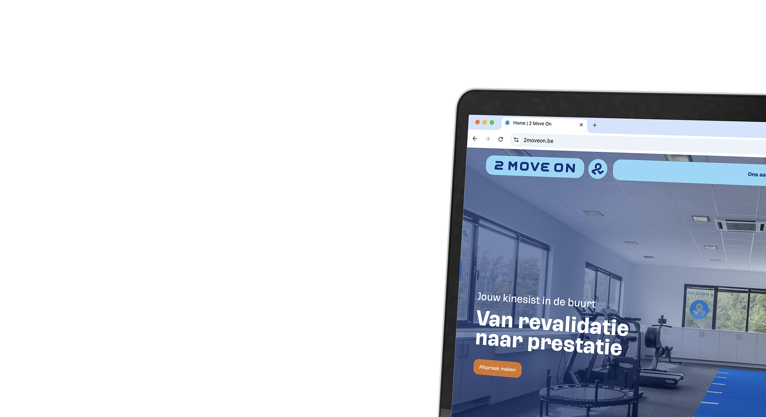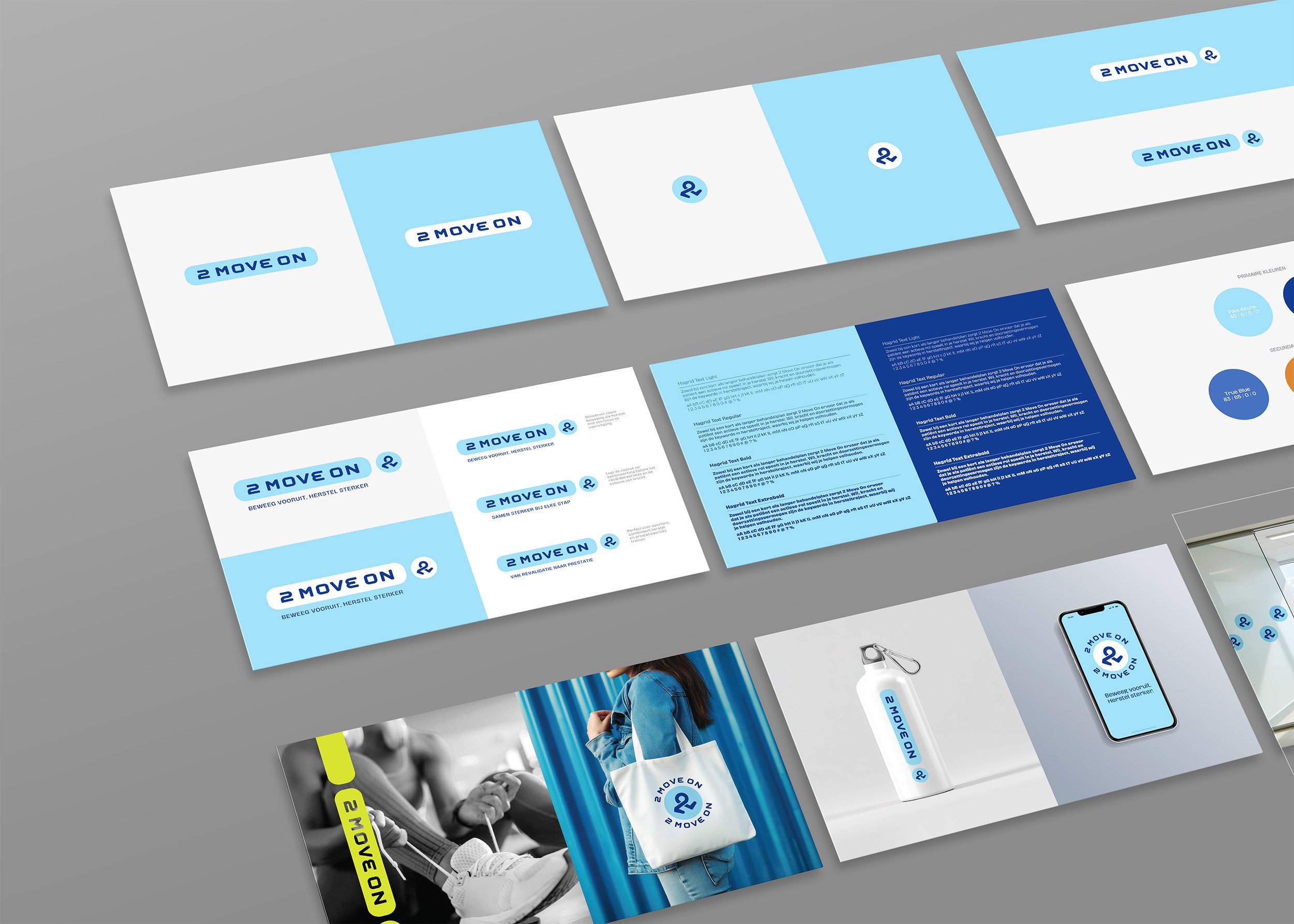 2 Move On is een groeiende praktijk voor kinesitherapie in Schoten. Patiënten een actieve rol laten spelen in hun herstel is het opzet, pijnvrij worden én blijven is het doel. 2 Move On vroeg ons om een nieuwe huisstijl die past bij het dynamische karakter van de praktijk. Aansluitend namen we ook de website onder handen.