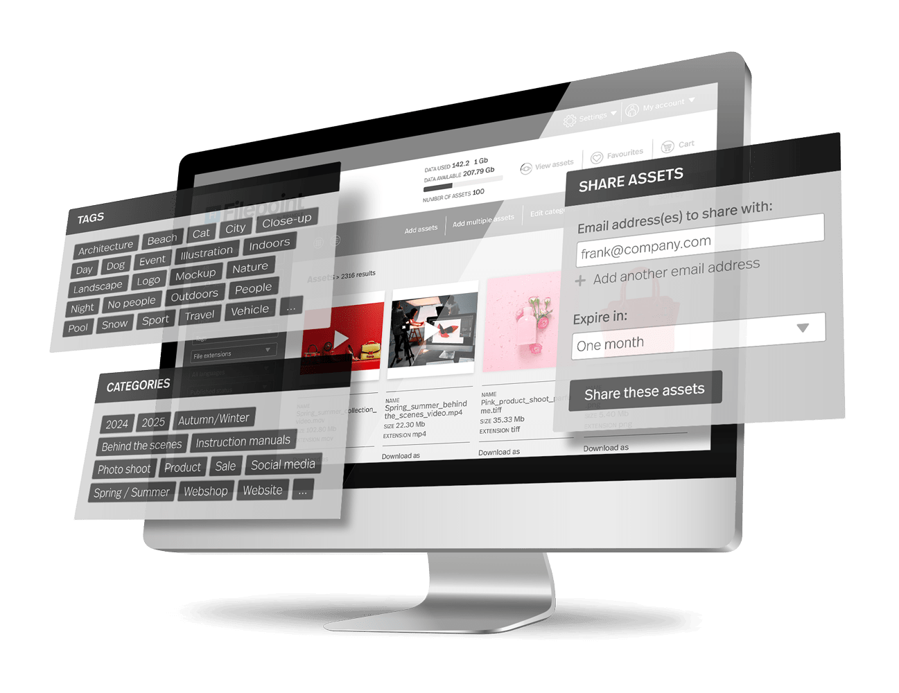 Daarnaast kun je documenten opslaan, zoals pdf’s, presentaties, brochures, brand guidelines en salesmateriaal. Ook audiobestanden (mp3, wav), bijvoorbeeld voor podcasts, radio of video, kunnen via een DAM-systeem worden beheerd. Filepoint, het in eigen huis ontwikkelde DAM-systeem van Brandle, ondersteunt ook InDesign-, Photoshop- en Illustrator-bestanden.